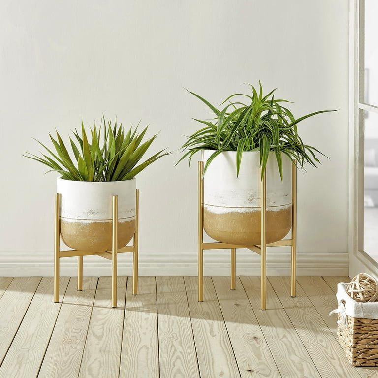 Web Check out our white and gold ceramic planters selection for the very best in unique or custom handmade pieces from our planters pots shops. Ideal for both indoor or outdoor use this set works just as well holding faux florals or plants that require minimal watering. Hopson 10 Black Planter wMetal Gold Stand.